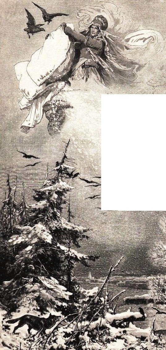 “Though many names are encountered, the creatures show such strong resemblances to one another that we may be sure of one basic configuration; she is a spirit of the woodland, a visitor to human dwellings in the winter season. She may inspect the order of the household, check on the behavior of children, and receive the offered gifts. She may punish or ordain fortune or misfortune for the coming year.”